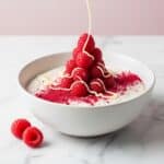 Vanilla whey protein powder or vanilla plant-based protein powder both work really well in this recipe. Whey protein mixes in very smoothly. If you use a plant-based powder, make sure to stir it in extra well since some blends can be a little thicker. Avoid collagen-only powders as they do not add much flavor or thickness.