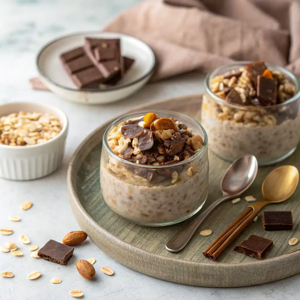 Mars bar overnight oats do not just taste the enjoyment – they are also surprisingly practical. In the morning, cold from the fridge, they are ready to eat. But some smart finishing touch can make them even better. Adding a teaspoon of Greek yogurt to the top by adding the sweetness and adds a velvet contrast. If you have found time, heat the oats in the microwave briefly – 20 seconds softens the chocolate and do everything towards the sweet area. Not melted, just hot and cheating is enough to feel the weekend-specific.