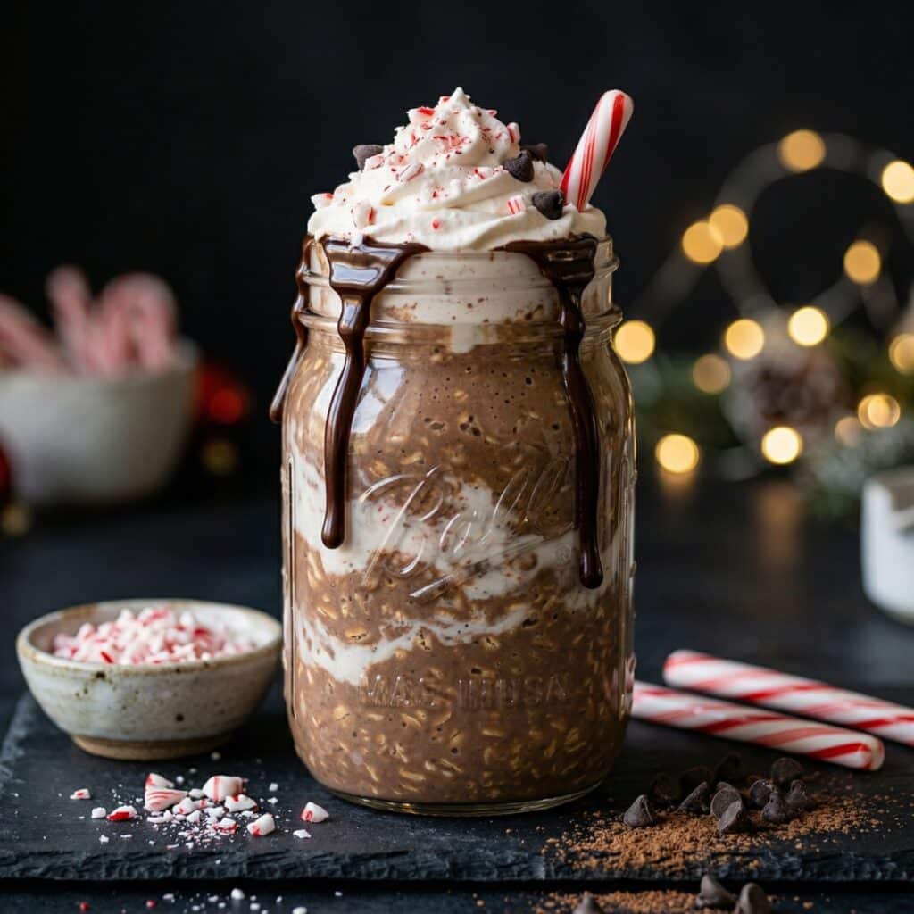 If you love the cozy flavors of a holiday coffee shop drink, you are going to be obsessed with these peppermint mocha overnight oats. This recipe takes just 5 minutes to prep the night before, and it serves 1 to 2 people. Wake up to a creamy, chocolatey, minty breakfast that tastes like dessert but fuels your whole morning.