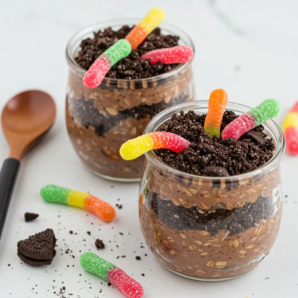 And once you nail the “worms and dirt” vibe? You’re golden. Toss a candy eyeball on top, maybe a cookie tombstone, and just like that—your oats are officially spooky.