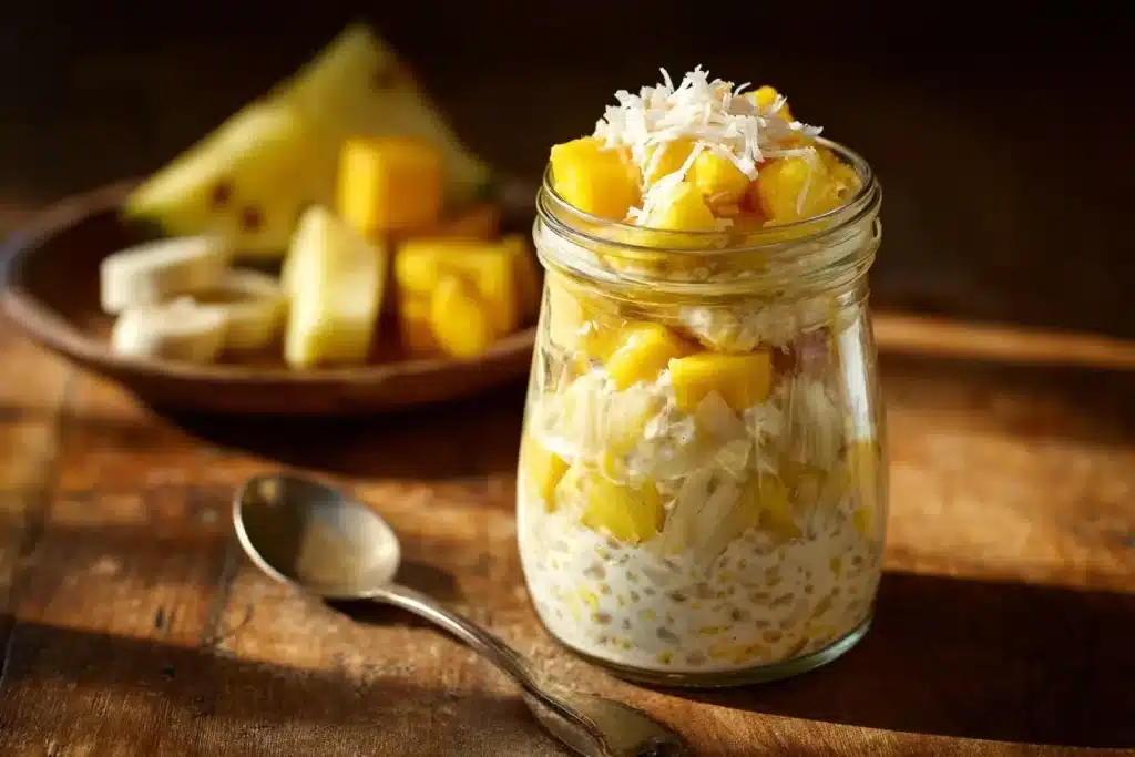 Old-fashioned rolled oats are the best choice for Sunkissed Tropical Overnight Oats. They hold their shape, soak up flavor, and provide the perfect chewy texture. Steel-cut oats can be too tough, and quick oats turn mushy. Choose certified gluten-free rolled oats if you’re sensitive. Looking for another creative take? Cottage Cheese Banana Bread Overnight Oats highlight how versatile rolled oats can be.