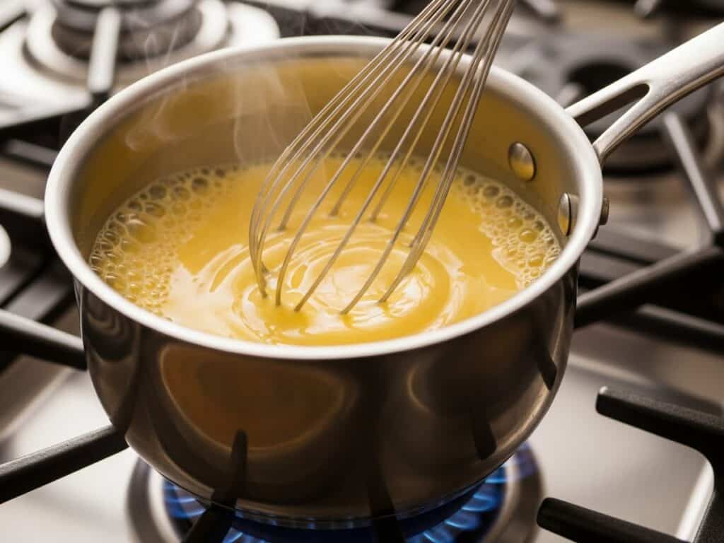 - Make the custard base: In a small saucepan, heat the milk gently and whisk in the egg yolk or cornstarch. Stir constantly over low heat until slightly thickened (do not boil). Remove from heat.